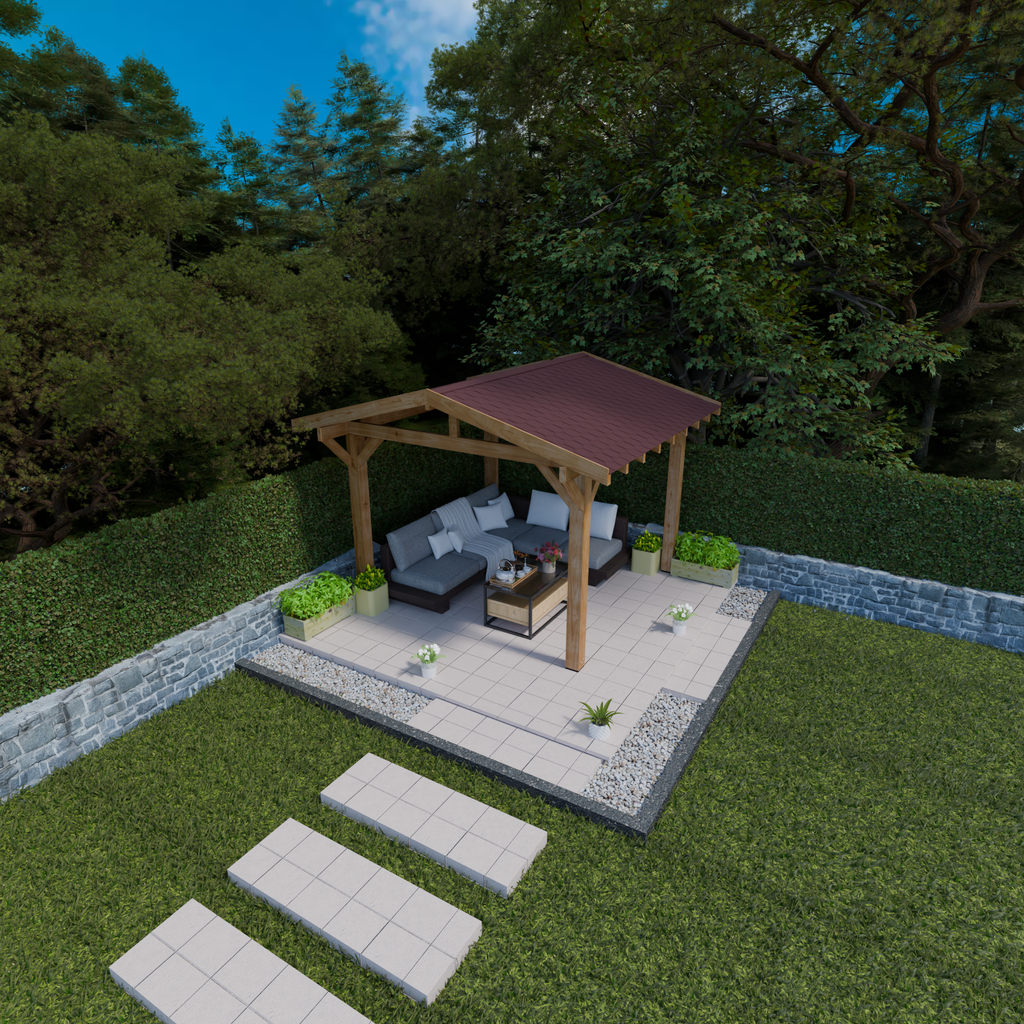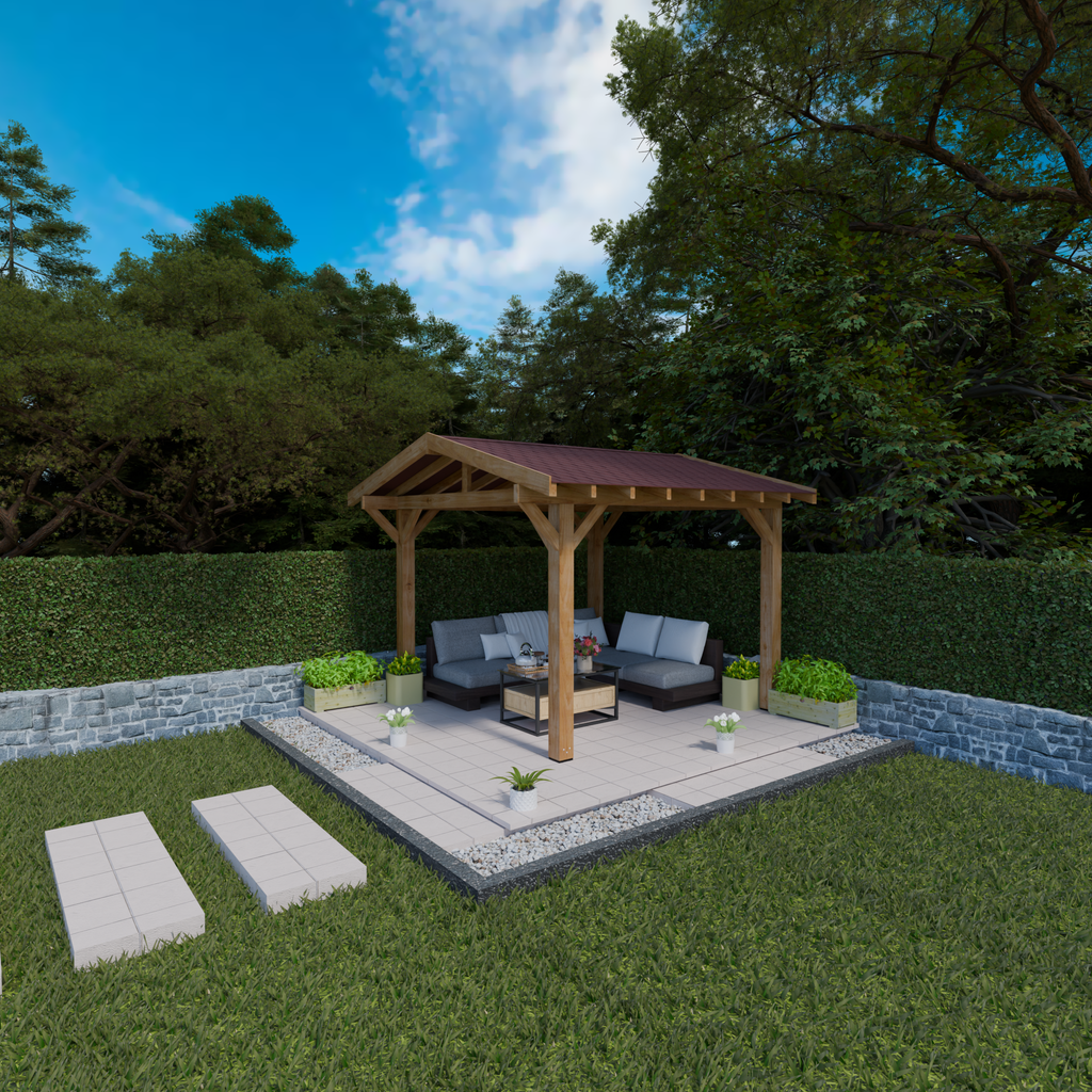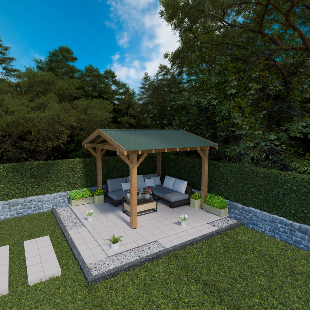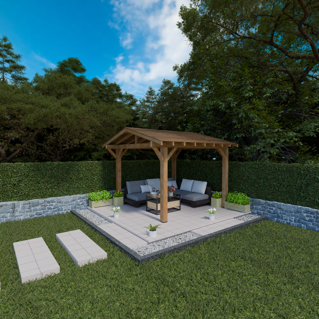 Planed Larch Pergola - Apex - With Overhang - Cedar Featheredge Roof Main shot