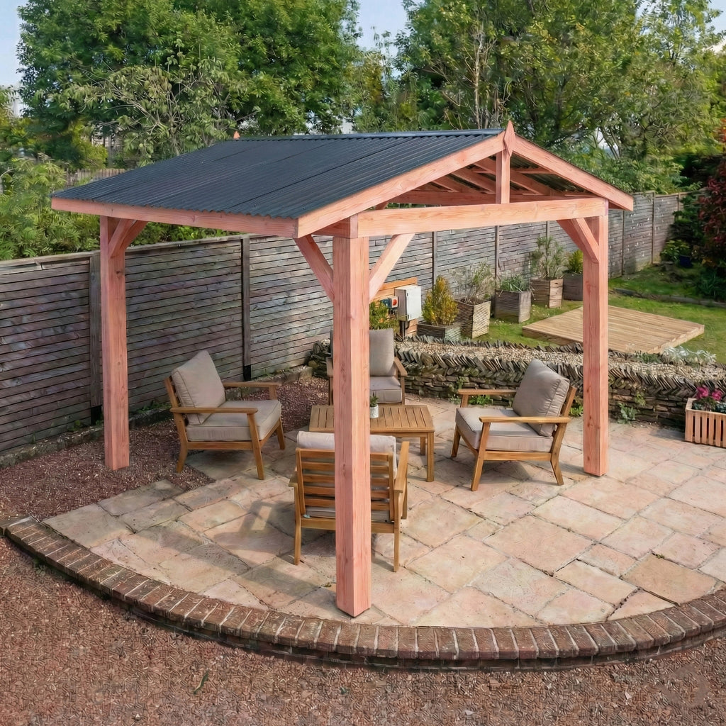 Wooden Gazebo - Katepal Red Shingle Roof - Apex Design - With Overhang day