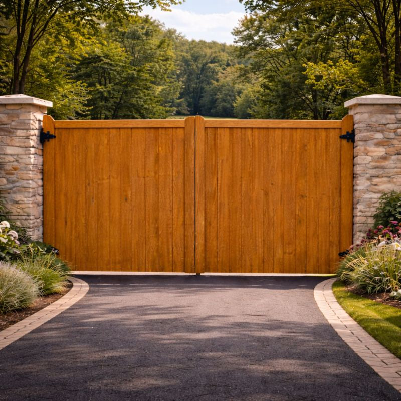 Featuring traditional joinery, beautiful natural grain, and robust construction, these gates are ideal for both classic and contemporary settings. Every piece is finished with attention to detail, ensuring durability, stability, and a premium appearance that improves with age.