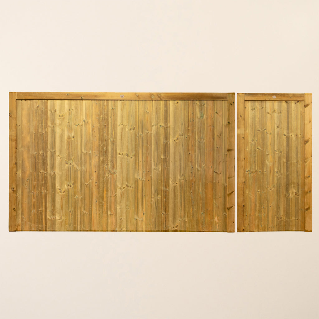 Shebbear Side Gate featuring pressure treated featheredge boards in vertical orientation, displaying the clean front face with planed finish and sturdy construction, available in multiple widths and heights