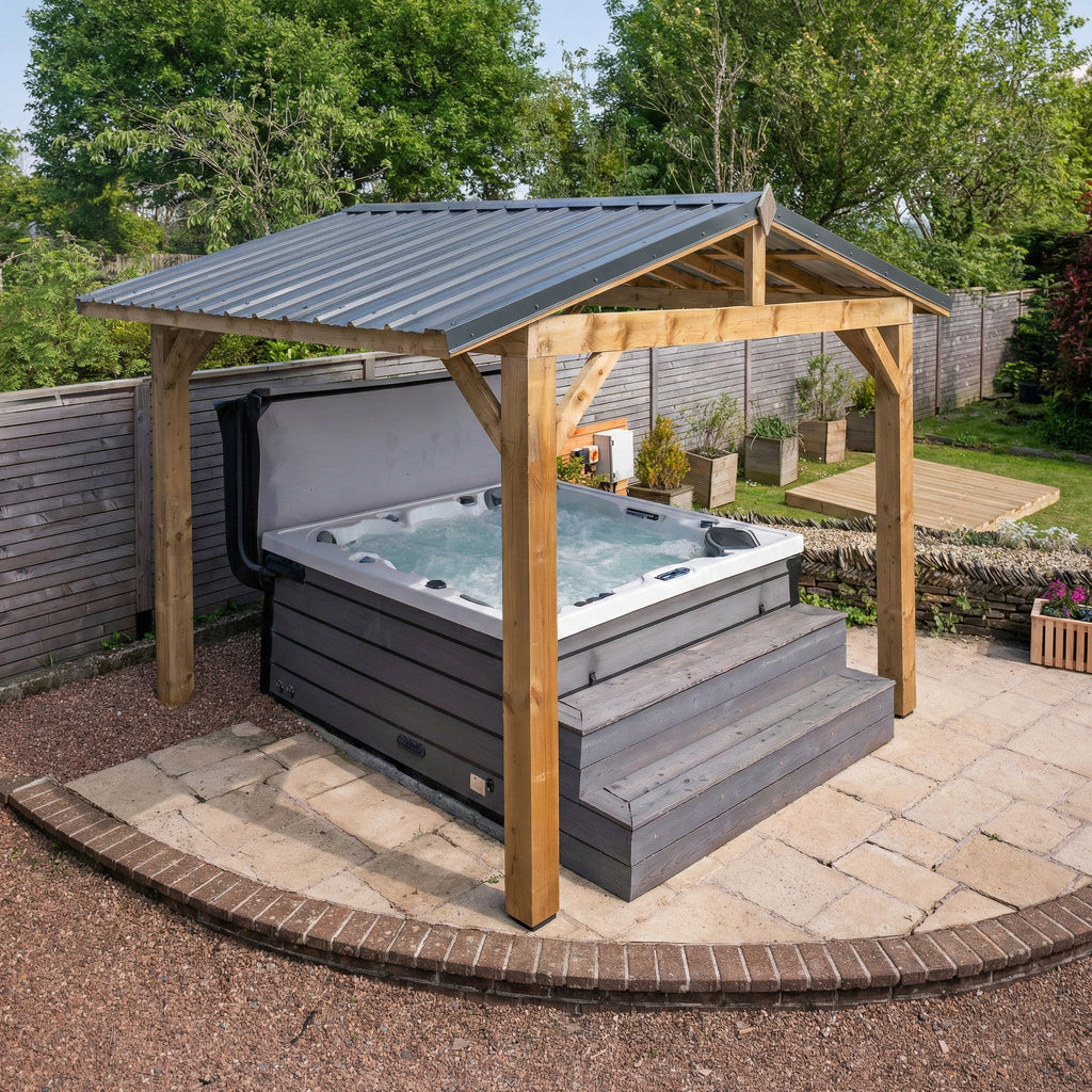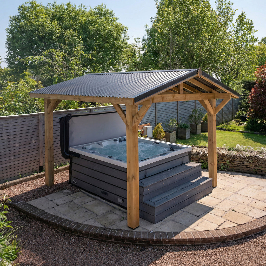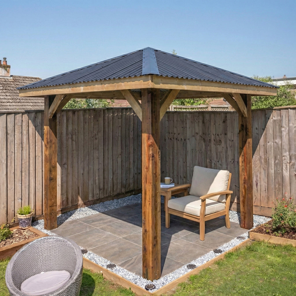 Wooden Gazebo - Katepal Brown Shingle Roof - Lean-To Design day