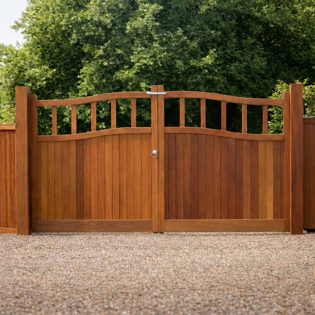 Enhance your property with the timeless charm and reliable security of our Swan Neck T&G Entrance Gate Pair. Designed with a graceful curved top and crafted using traditional Mortise and Tenon joinery, these gates offer the perfect balance of style and strength.