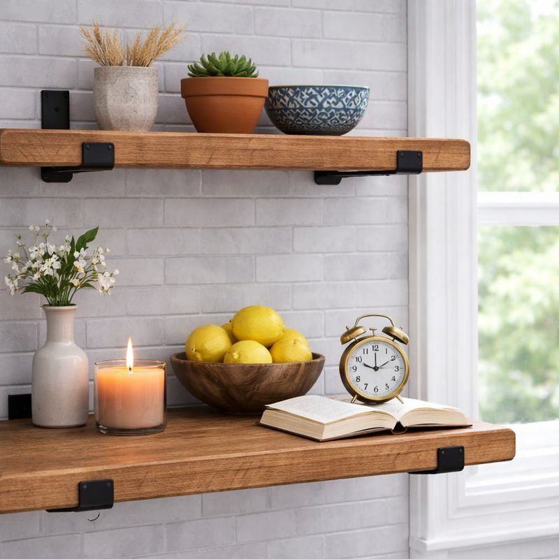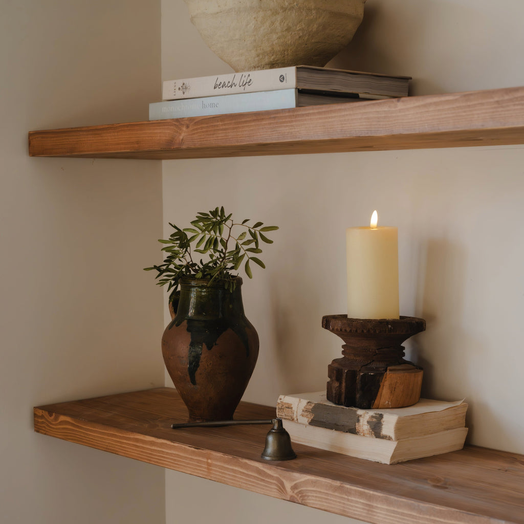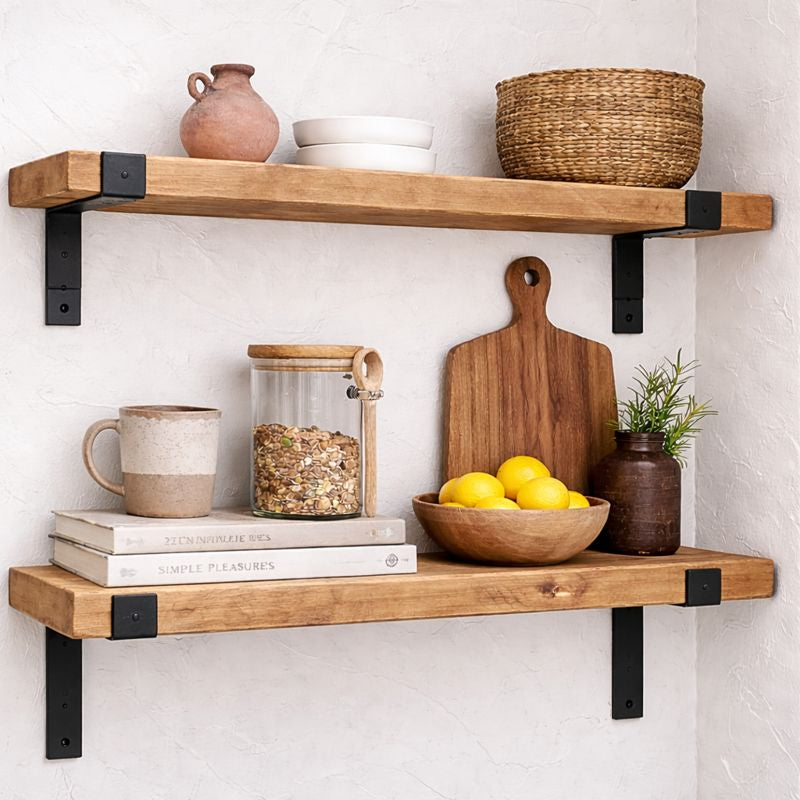 Discover our exquisite range of handmade and stained shelving, available in various sizes to suit all your needs. We also provide bespoke options tailored to your preferences. Whether you're looking to enhance your kitchen, bathroom, bedroom, or office, our shelving solutions have got you covered.