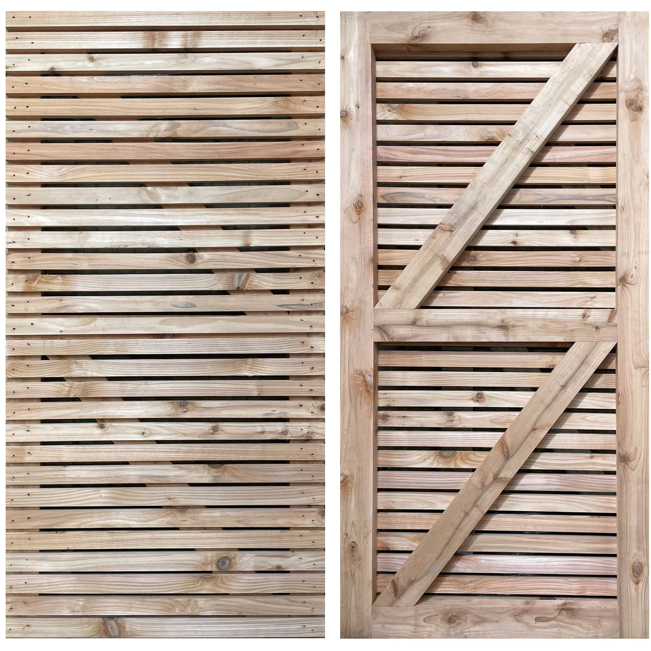 - Available in 2 timbers: For those who prefer little maintenance, our slatted gate is available in Cedar. Alternatively, we also offer the slatted gate in Redwood.